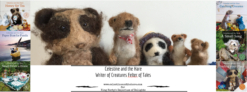 There are now six Celestine and the Hare books, all published by Graffeg; and Karin Celestine runs a thriving, creative business of creature-making alongside her writing work. Author Karin Cel